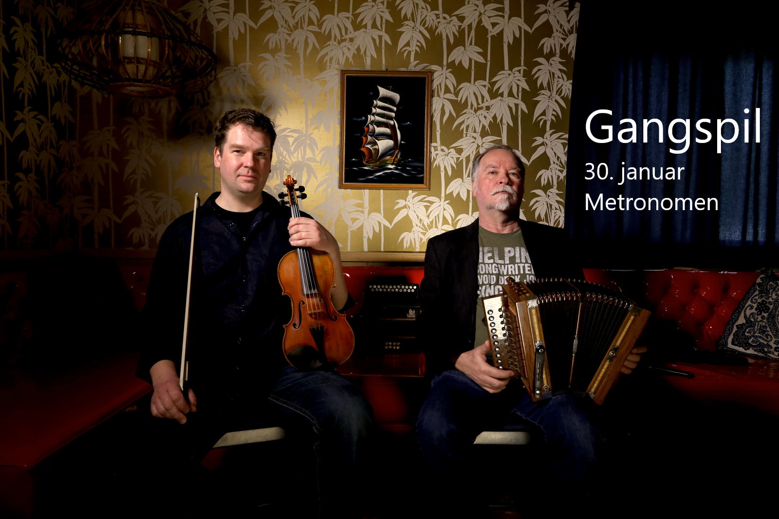 Kristian Bugge og Sonnich Lydom kendes fra mange folk-sammenhænge. Tilsammen er de Gangspil i duoformat. Musikalsk kommer de vidt omkring, for violinist Bugge elsker især den danske traditionsmusik, mens Lydom er en sand fan og connaisseur af den irske og fransk-canadiske musik, udover den danske folkemusik. I de seneste mange år har han ihærdigt genintroduceret såvel den lille toradede, diatoniske harmonika som mundharmonikaen herhjemme. Også musikken fra Fanø, hvorfra Sonnichs familie stammer, har en særlig plads i hans hjerte. Bugge og Lydom er efterspurgte på den danske folkscene. Men slet ikke bare der. Tværtimod er de meget jævnligt på turné sammen i USA.